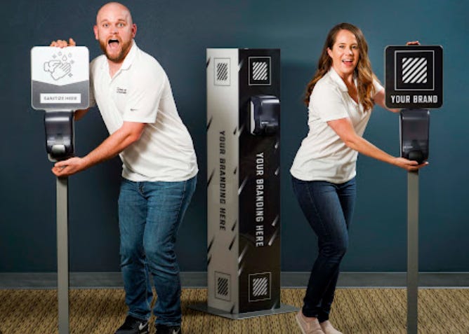 일찍부터 아내랑 사부작 사부작 사업하다가, 2020년 코로나 터지자 사업을 피벗해야해서 손 소독제 디스펜서 스탠드 팔면서 첫 해에 약 200억 원($15M) 매출을 냅니다. (커머스는 이때 처음인데.. 고수의 향기가..)