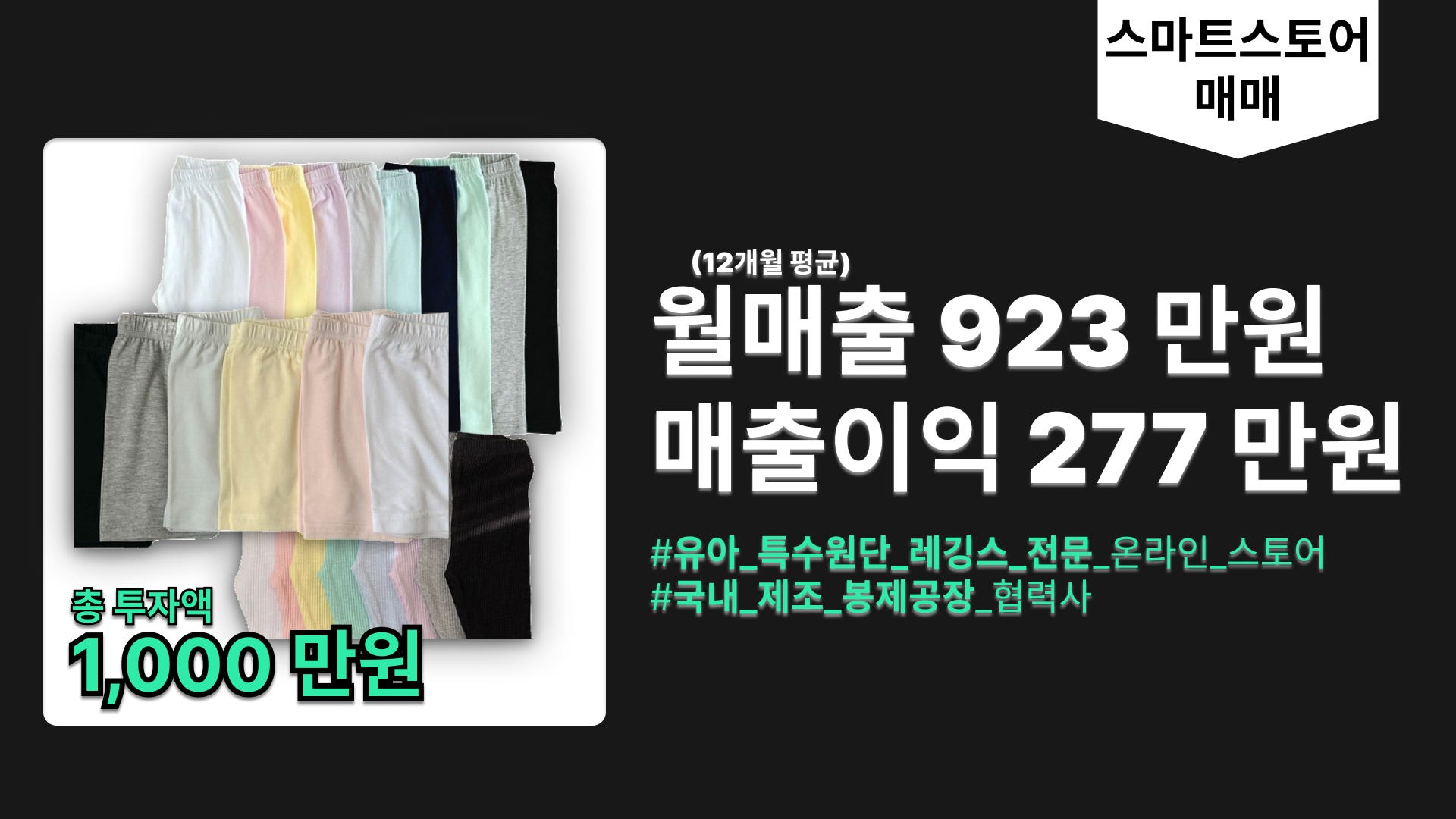 그래서 여러 중개 플랫폼을 뒤지던 중, 눈에 들어온 매물이 바로 "아기 레깅스"를 판매하는 흔하디 흔한 사업체였습니다. 네이버에 "아기 레깅스"를 검색하면 나오는 수많은 사업체 중 하나였죠. 그런데 이 사업체가 유독 제 눈에 들어온 이유는 무엇이었을까요?